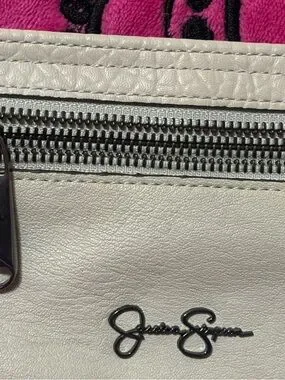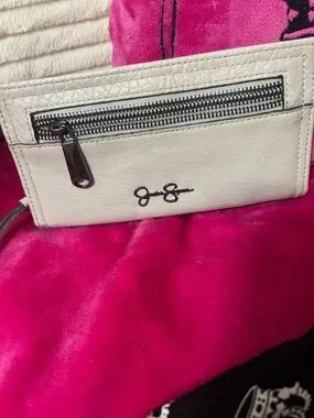 Jessica Simpson White Leather Crossbody Wallet with Front Zip