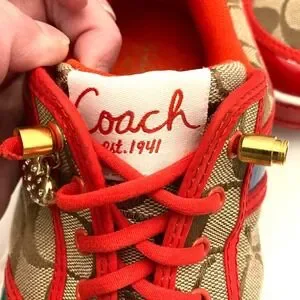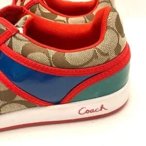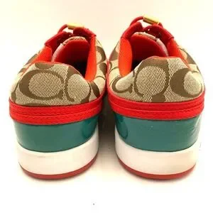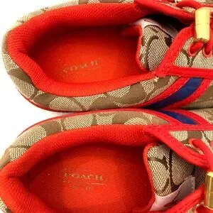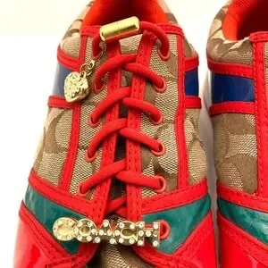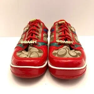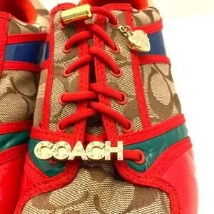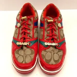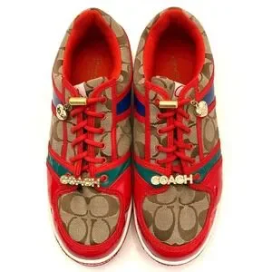 VTG Coach Women's Sneakers Oriana Size 9.5 Rhinestones Charms Logo Red Khaki Y2K