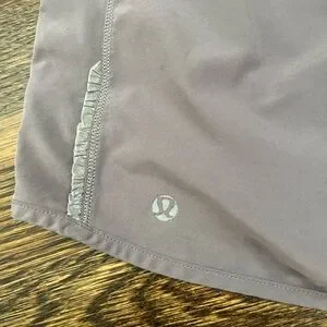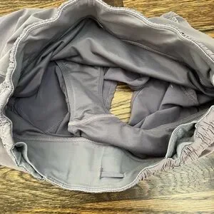 Lululemon purple/gray shorts. Built in liner and internal drawstring. Some fading in color and mark shown in last picture. Size 6