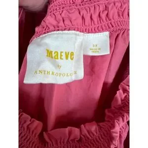 Unleash your inner romantic with this charming Maeve by Anthropologie blouse. The smocked bodice gently hugs your figure, creating a flattering silhouette, while the square neckline adds a touch of modern sophistication. The voluminous puff sleeves create a dramatic, eye-catching effect, adding a playful and stylish element to the design. The vibrant pink hue exudes confidence and femininity, making it a standout piece in your wardrobe. Perfect for a garden party, a casual brunch with friends, or a romantic date night, this blouse will make you feel effortlessly chic and stylish.