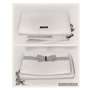 NWOT Jessica Simpson Taupe Bow Back Zip Wallet Wristlet 8” X 4.5” X 1”