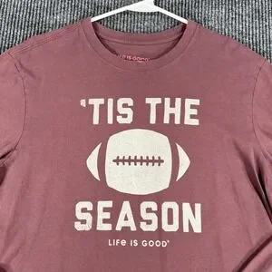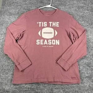 Life is Good Shirt Mens Large Red Long Sleeve Football Season Crusher Crew