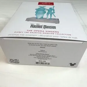 Hallmark Keepsake Disney The Haunted Mansion Collection The Opera Singers ornament features interactive light and sound when connected to a Hallmark Keepsake Power Cord (sold separately). This artist-crafted piece by Jake Angell depicts the iconic graveyard opera singers from the classic Disney Parks attraction and plays "Grim Grinning Ghosts" performed by The Ghosts. It is designed to coordinate with other Haunted Mansion Collection ornaments and the tree topper to unlock additional narrative content and sequential performances. This item is NEW in BOX.