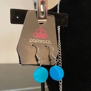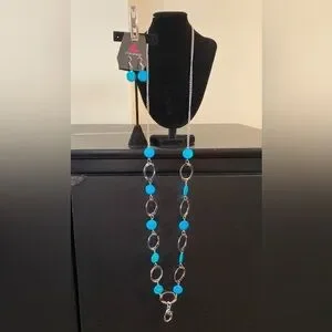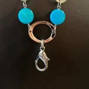 Blue and Silver Necklace and earring set. With clip for ID or keys!