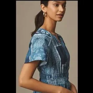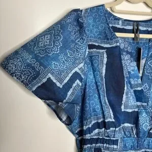 Anthro Maeve Somerset Maxi Dress XL Blue Bandana Cotton Smocked Waist NWT
