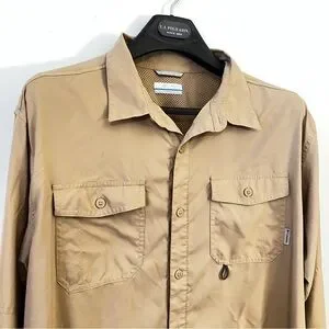 This Columbia jacket combines a lightweight design with a versatile tan color, perfect for casual layering. Its utility style offers a timeless look, crafted from a comfortable cotton-blend material. Excellent condition. Smoke free home. Fast shipping!!!