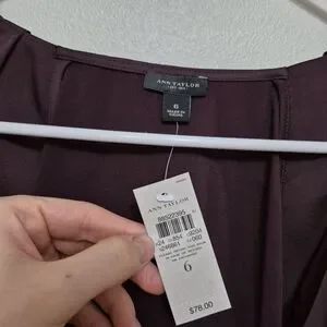NWT Ann Taylor Women's Wine Burgundy Satin V-Neck Wrap Short Sleeve Blouse