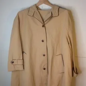 designer khaki burgundy trim trench coat