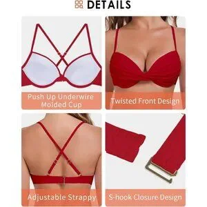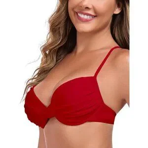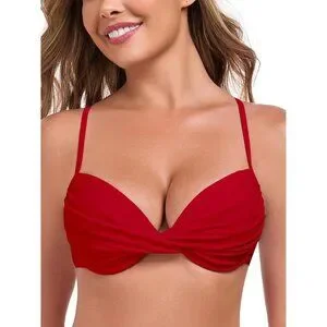 Women's Red Push Up Bikini Tops Ruched Twist Front Underwear Top Swimsuit