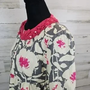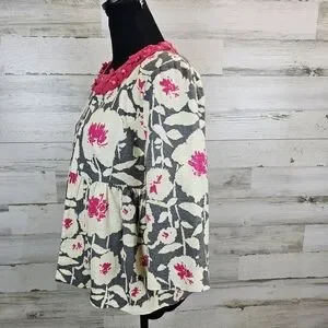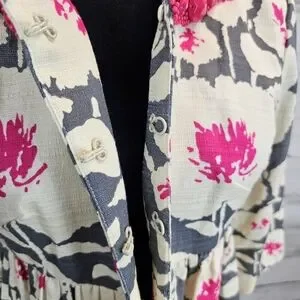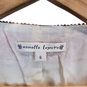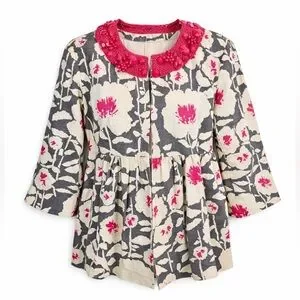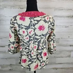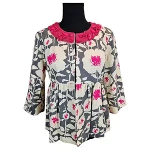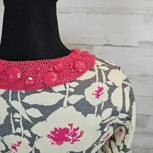 Nanette Lepore Floral Beaded Neck Peplum Blazer Sz 6 Barbie Pink Gray Coquette