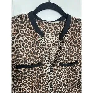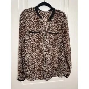 Olive & Oak Sheer Leopard Print Blouse Long Sleeve Button Up Top Relaxed Fit S