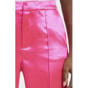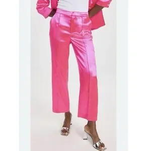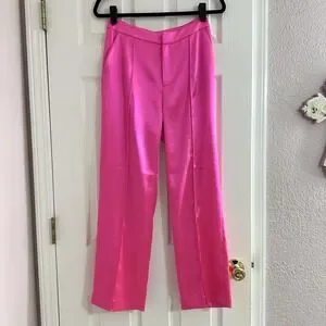 New NWT Cinq à Sept $365. Women's size 2 XS. Ultra pink satin karis pants straight leg mid rise trousers. Shiny look to it, soft, bright, vibrant, statement piece, business casual, going out, night out, dress up, work attire,