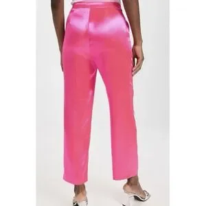 NEW Cinq à Sept $365 Ultra Pink Satin Karis Pants Straight Leg Mid Rise Sz 2 XS