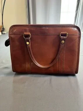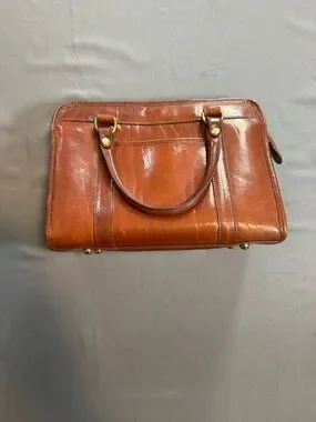 Brahmin Cognac Leather Satchel with Brass Medallion