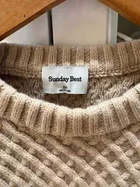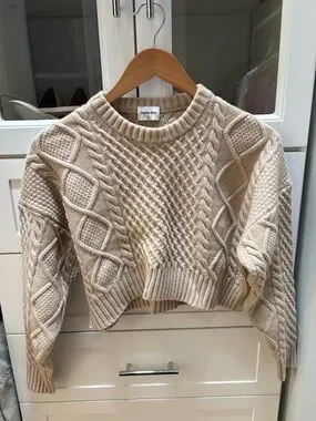 Aritzia Beige Cable-Knit Cropped Crewneck Sweater
