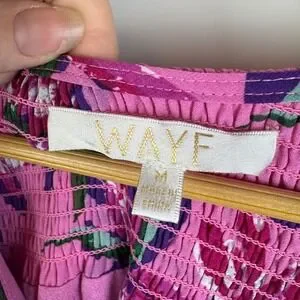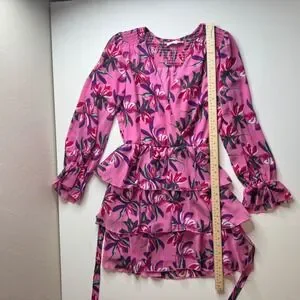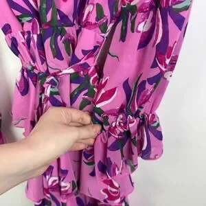 WAYF Tiered Ruffle Floral Mini Dress Size Medium Pink Long Sleeve Feminine Flowy