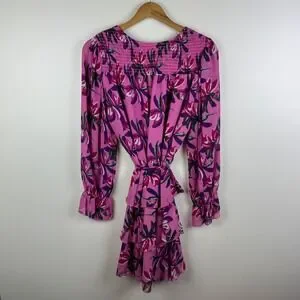Keywords: WAYF, floral dress, mini dress, smocked dress, ruffle dress, tiered dress, long sleeve dress, pink dress, purple dress, bohemian dress, party dress, casual dress, womens dress, floral print, spring dress, Tiered Dress, Smocked, Spring Dress, Pink Floral, Romantic Style, Date Night Dress, Resort Wear, Garden Party, Brunch Dress, Vacation Outfit, Feminine, Boho Chic, Lightweight, Flowy