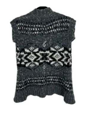 Cozy Grey Patterned Open-Front Women's Sweater Vest