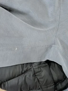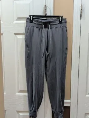 Comfortable gray jogger pants with a relaxed fit. Lightweight, stretch fabric for all-day movement. Elastic cuffs and waistband for a secure, comfortable fit. Please see the last 2 pictures, there is a bleach spot on the right inner thigh and on the waist. Otherwise, great condition.