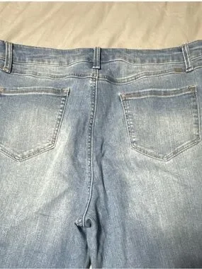 Straight leg jeans with a light blue wash. Subtle fading and whisker details at the hips. Five-pocket styling with a zip fly. Casual, versatile denim for everyday wear.