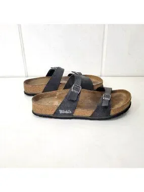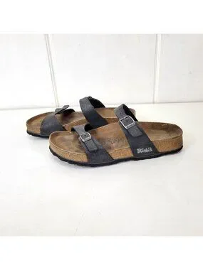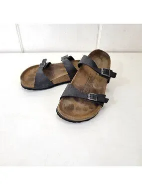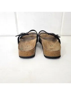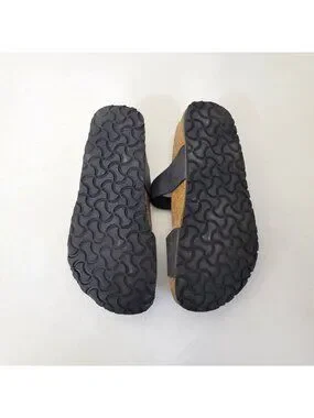 Birkis Birkenstock Women's Black Double-Strap Sandals With Contoured Cork Footbe