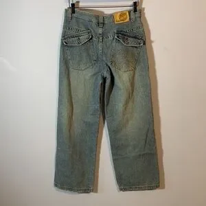 Timberland medium wash vintage Y2k wide leg jeans embroidered tight logo boys 18