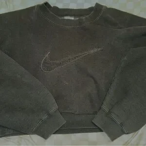 Classic Nike crewneck with stitched swoosh logo. Cropped fit and ribbed cuffs. Soft, heavyweight fleece fabric. Subtle vintage fade for lived-in look.
