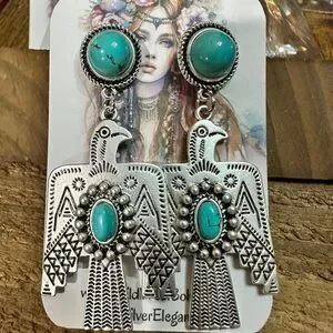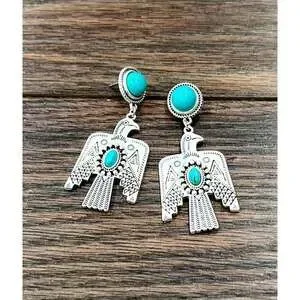Why choose the Thunderbird Turquoise Earrings? These earrings not only showcase the beautiful craftsmanship typical in the jewelry category but also stand out with their unique combination of durable alloy metal and an elegant antique silver plate. Plus, they are nickel, lead, and chrome-free, making them a safe choice for sensitive ears. Elevate your accessory game and express your individuality with these striking earrings! Add them to your collection today!