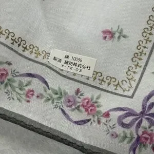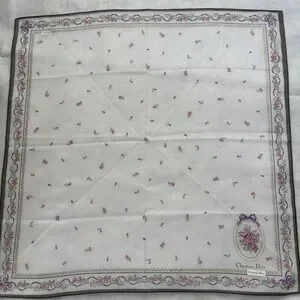 CHRISTIAN DIOR Scarf Handkerchief Floral Rose Ribbon Cotton White Fashion 18.5"