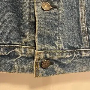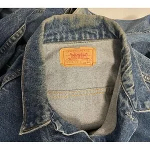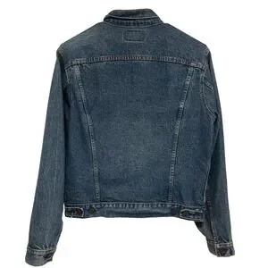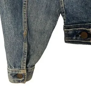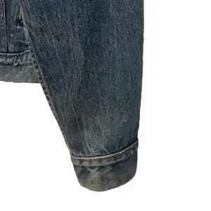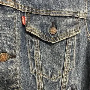 evi's 71506, levi's 71506 type iii, vtg levi's trucker, levi's big e style, 90s levi's jacket, made in usa levi's, type 3 denim jacket, 44L levi's jacket, levi's 44 long, men's denim trucker, classic levi's button front, levi's brown leather patch, vintage denim jacket, faded wash levi's, oversized denim jacket, 90s streetwear, y2k denim, workwear style, heritage denim, retro levi's outerwear