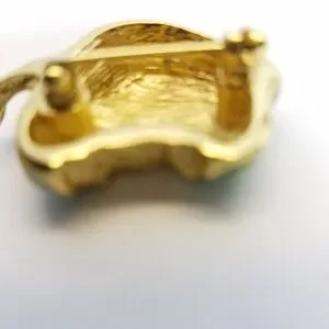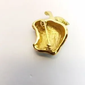 1.25" length x 1" width, green enameled apple with a mottled gold tone bite taken out