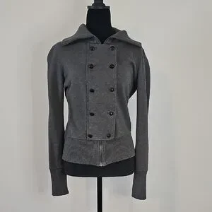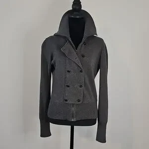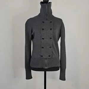 Chic Banana Republic grey cotton full zip jacket with double-breasted button design.