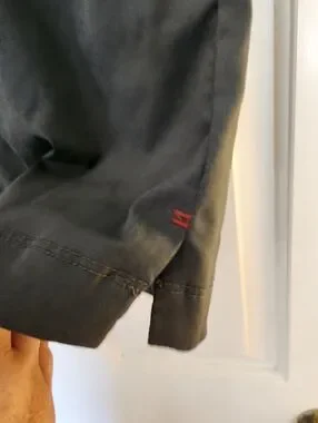 - fixed waist with button closure belt loops