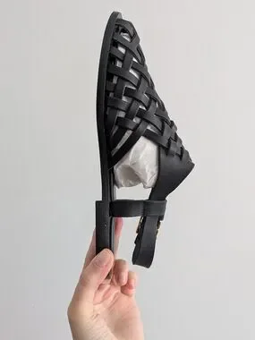 NWT Mansur Gavriel Black Woven Fisherman Leather Sandal