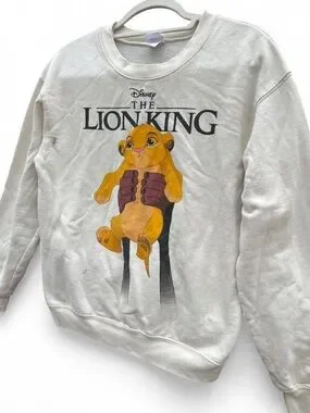 Og throwback in a Cream crewneck featuring a large printed Simba graphic and "The Lion King" text. Soft-looking midweight fabric for everyday wear. Classic Disney graphic adds nostalgic appeal.