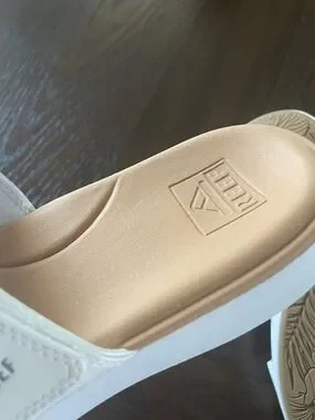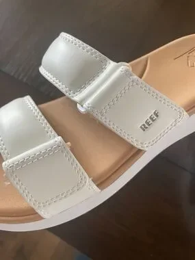 Reef Women’s White Double-Strap Slide Sandals with Tan Footbed