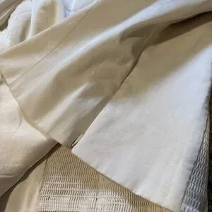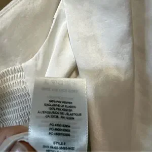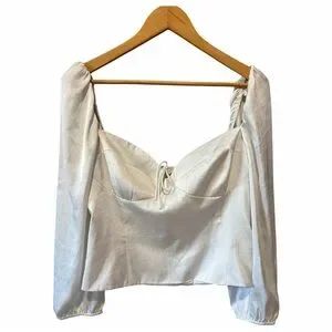 New with tag size XL off white blouse puff sleeve, sweetheart neckline timid with bow tie front, smocked elastic back, side zipper easy to put on, satin silky like