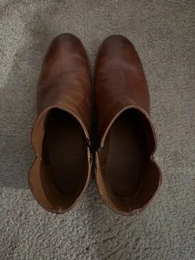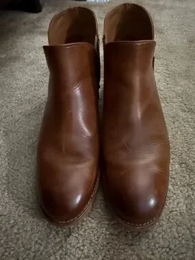Smooth tan leather upper with stacked leather sole. Side buckle accent for added style. Durable leather outsole. Clean, classic silhouette.