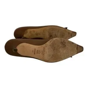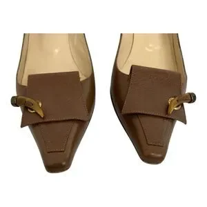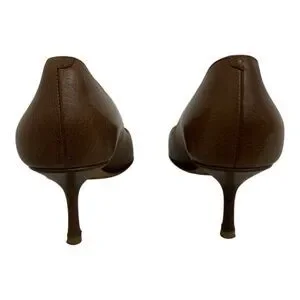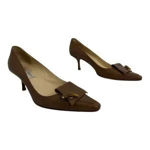 Jimmy Choo London Brown Leather Pointed Toe Pumps Kitten Heel Italy Size 40 US 9