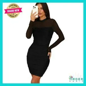 Brand new, never worn, and in flawless condition — this chic mesh long sleeve mini dress delivers a sexy, eye-catching look perfect for cocktail parties, night clubs, or a special date night. The ruched bodycon fit is curve-hugging and flattering, made from a stretchy, comfortable fabric.