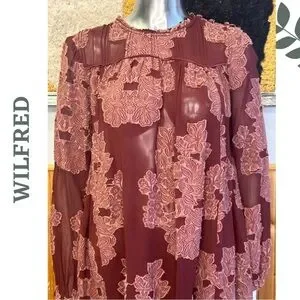 Wilfred Lace Overlay Mini Dress Silk Trim Romantic Burgundy Small