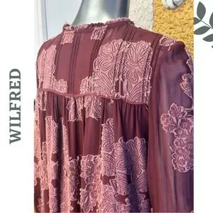 Beautiful Wilfred by Aritzia lace overlay mini dress in a rich burgundy tone — romantic, feminine, and effortlessly elevated. This piece features an intricate floral lace overlay with soft drape, silk trim detailing, and a flattering relaxed silhouette that moves beautifully.
