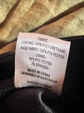Sleek and statement-making Meshki black coated pants with a high-shine patent finish. These give major edgy, night-out energy while still being super wearable. Flattering high-rise fit with a straight leg silhouette.