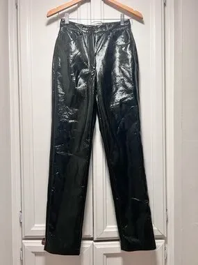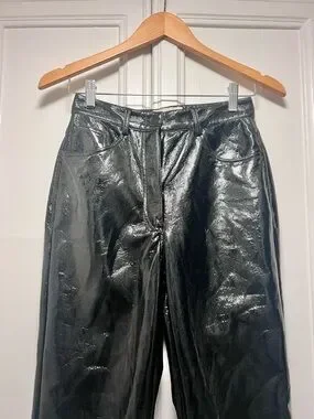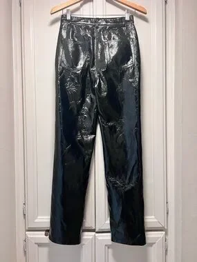 MESHKI Black Oakleigh Straight Leg Patent Pants Faux Leather Black Glossy Small