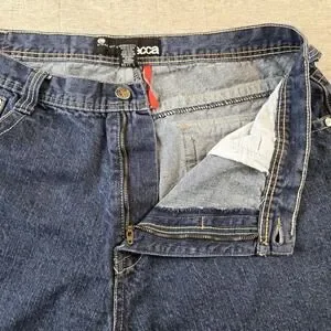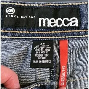 The Mecca Men's Shorts are a stylish and versatile addition to any summer wardrobe. Featuring a high-rise wide leg design with button back pockets, these Bermuda-style shorts are perfect for casual or travel occasions. Made from a comfortable cotton blend fabric with a dark wash, these shorts have a relaxed fit and come in a solid blue color with embroidered logo accents. The 40" waist and 15" inseam make them a great option for a regular fit, while the 5-pocket design and easy-care instructions ensure practicality and convenience. Perfect for the summer, fall, or spring seasons, these Mecca shorts are a fashionable choice for any man's closet. BA008