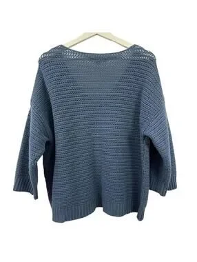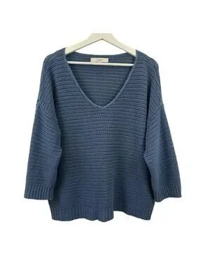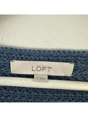 LOFT Women’s Chunky Blue Knit V Neck Sweater Size M