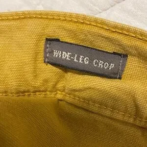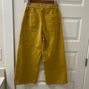 J. Crew cropped wide-leg pants in a mustard yellow shade. Front patch pockets and belt loops. High-rise fit with a relaxed silhouette. Versatile color for casual styling.