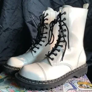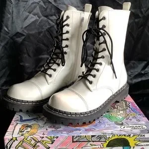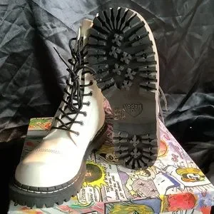 A lugged sole dials up the rocker-chic style of a combat boot complete with an easy-on side zipper.