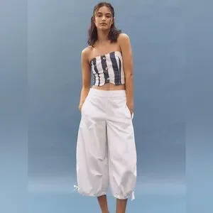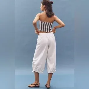 NWT! Anthropologie Pilcro Chalk White Crop Drawstring Cotton Pants - Medium 🎡