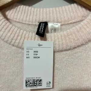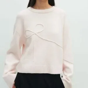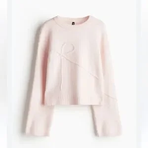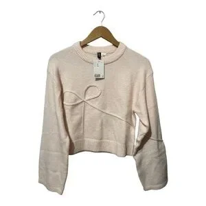 H&M Appliquéd Sweater Light Dusty Pink Bow 2XS Long Sleeve Knit Divided NWT